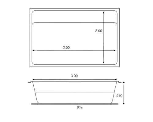 Mini piscina rectangular 3×2 con banco alargado, cómodo y antideslizante para sentarse.  Es apta para adultos y como piscina infantil. Esta piscina pequeña de fibra está preparada para ser instalada en superficie sin refuerzos adicionales.