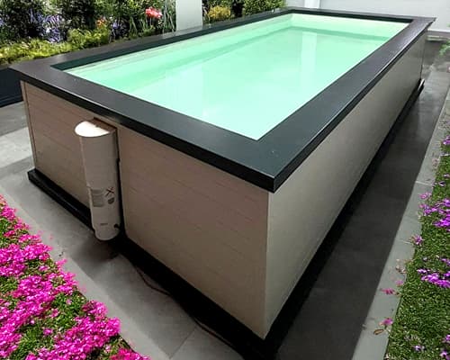Piscina prefabricada de aluminio Easy con depuradora incluida, que no necesita grúa, porque viene desmontada.
