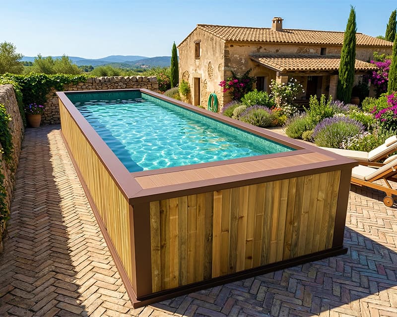 Piscina con depuradora incluida de estructura de aluminio con vigas de madera natural tratada con autoclave para su uso en exterior en 3 alturas: 0,80 m., 1 m., 1,20 m.