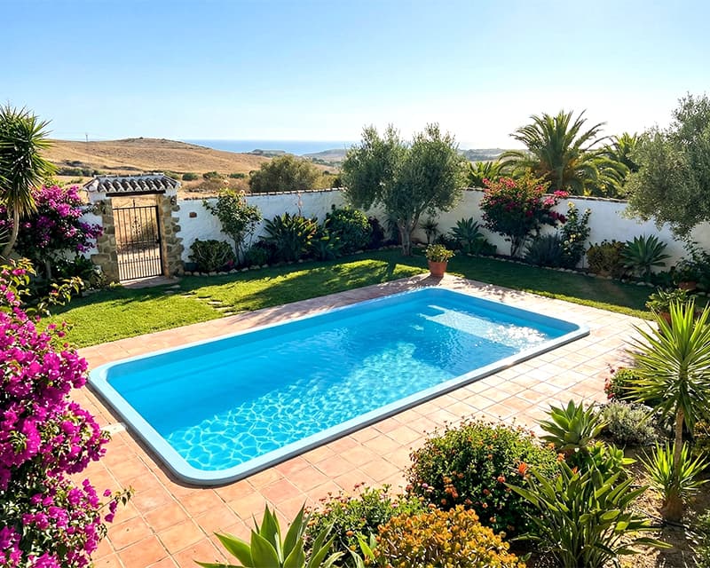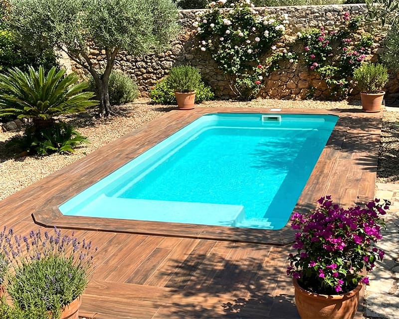 Piscina 6×3 de fibra estilo playa Capri60 en Andalucía