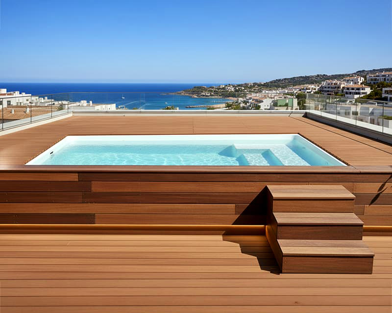 • Esta piscina se puede equipar con jets de hidromasaje para tener un jacuzzi en la terraza