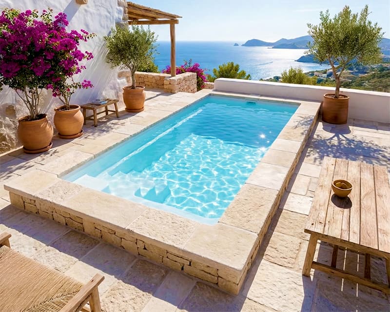 La Piscina elevada poliester 4x2 Cielito es una piscina pequeña ideal para patio pequeño o jardin pequeño con poco espacio.